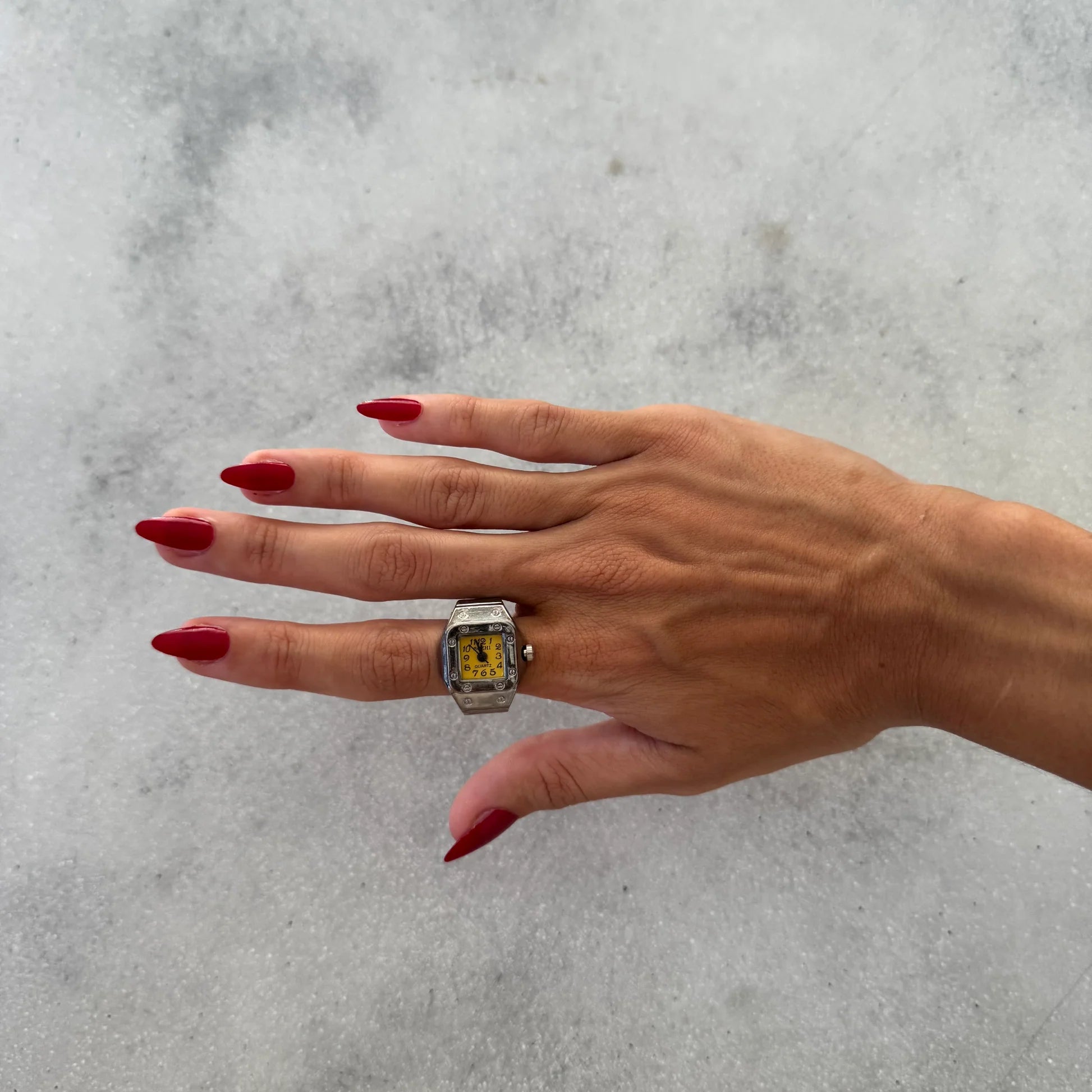The Belora Ring Watch is a stylish unisex accessory designed in Milan, crafted from a durable zinc alloy and metal blend. It merges functionality with chic design, offering a unique and contemporary take on personal fashion accessories. Our rings have only one size. They are adjustable to any finger.
