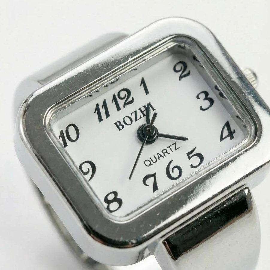 "This watch ring is awesome! It fits perfectly on any finger and feels really comfortable. It even comes with an extra battery and a fun scratch-and-win card. Highly recommend!"